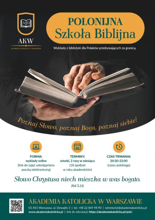 Polonijna Szkoła Biblijna jest pierwszym projektem tej uczelni w pełni dedykowanym Polakom żyjącym za granicą. Jej celem jest umożliwienie dostępu do pogłębionej wiedzy biblijnej niezależnie od miejsca zamieszkania.