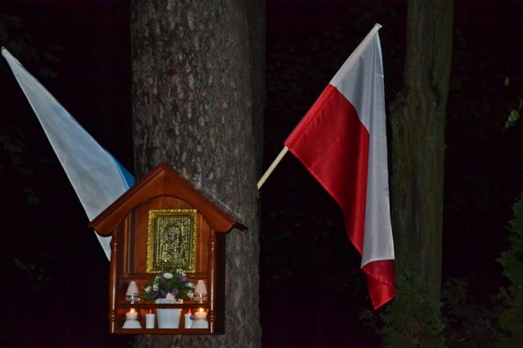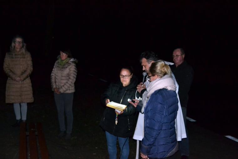 Następnie rozpoczęła się modlitwa różańcowa. Odmawialiśmy tajemnice światła. Ksiądz zachęcił, by każdy przedstawił Matce Bożej swoją intencję. Wymienił ponadto trzy intencje wspólne, dziękczynienia za przodków, którzy ustawili tę kapliczkę, za wszystkich, którzy zaangażowali się w jej odnowienie oraz za wszystkie te sprawy zebranych, które nie pozwalają nam jeszcze do końca zaufać Bogu. Podkreślił znaczenie i moc modlitwy wspólnotowej.