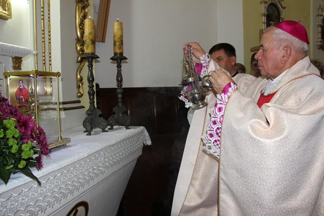 Zaznaczył, że ks. Popiełuszko jest przykładem, że zwycięża nie prawo zemsty, ale prawo miłości. - Zamordowali ks. Popiełuszkę, ale ci, którzy tego dokonali dzisiaj są wspominani jako przykłady odstraszające, natomiast ks. Popiełuszko jest wyniesiony na ołtarze, jest przyzywany jako patron, opiekun robotników oraz ludzi pracy i pewnie niedługo zostanie świętym – stwierdził bp Napierała.