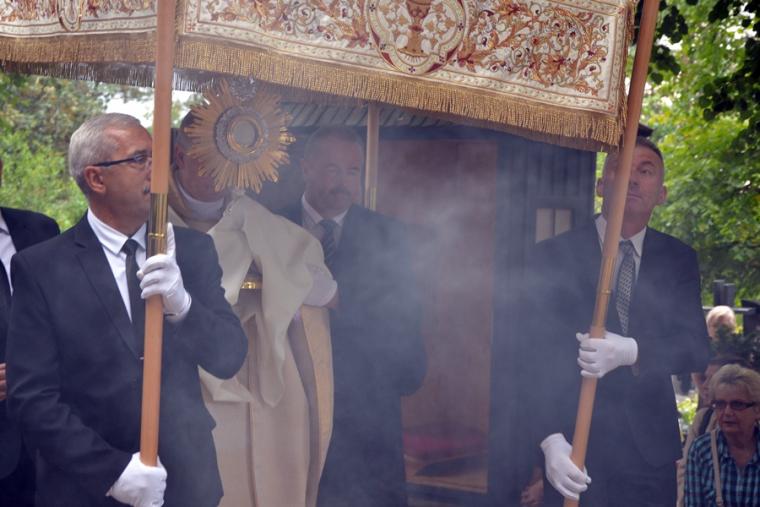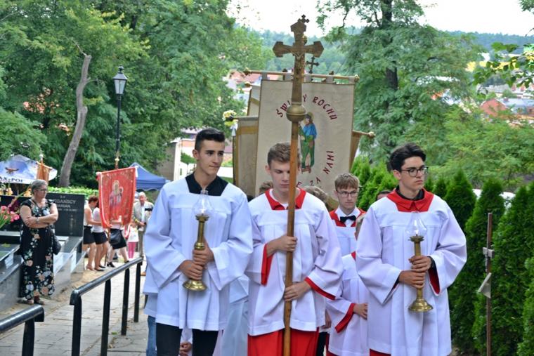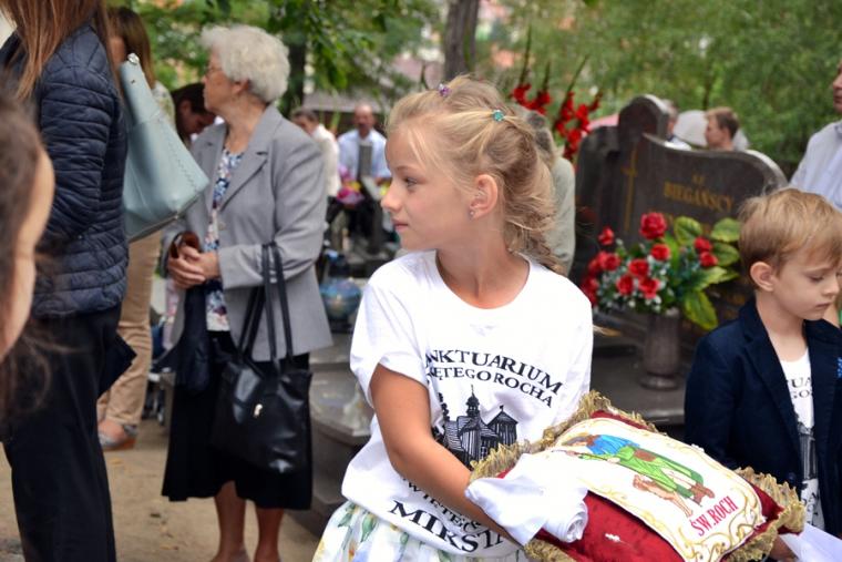 Po mszy świętej Ksiądz Biskup odczytał litanię do św. Rocha. Następnie procesja z Najświętszym Sakramentem przeszła cmentarnymi alejami. Błogosławieństwo Najświętszym Sakramentem zakończyło uroczystą sumę odpustową. Zgodnie z tradycją po Mszy św. wierni zabierali do domów małe chlebki, by podzielić się nimi z bliskimi. Przy rozdawaniu chlebków pomagali uczestnicy spotkań w Szkole św. Rocha oraz dziewczęta z Eucharystycznego Ruchu Młodych.
