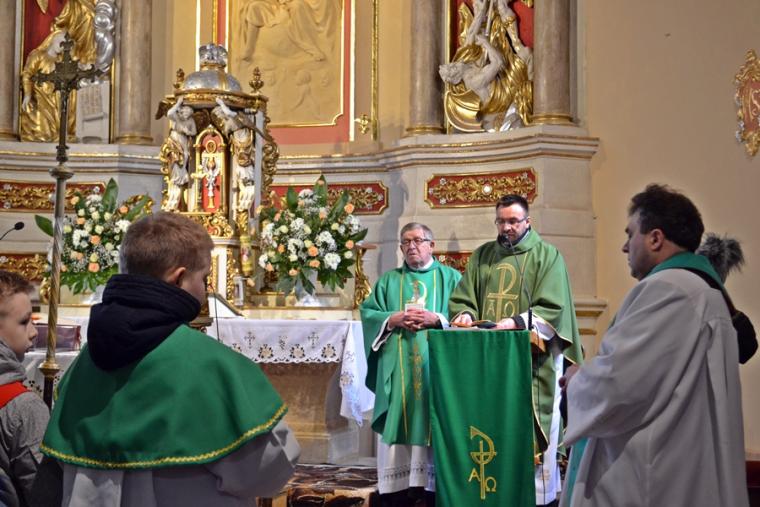 Już po raz dwudziesty szósty - 11 lutego- w dniu, w którym Kościół wspomina Matkę Bożą z Lourdes obchodzimy Światowy Dzień Chorego. W tym roku przypadł w niedzielę. Po raz pierwszy Światowy Dzień Chorego obchodzony był w 1993 roku. Został ustanowiony z woli i inicjatywy św. Jana Pawła II. Ustanowiony przez św. Jana Pawła II Światowy Dzień Chorych ma skierować naszą uwagę na potrzeby ludzi chorych i cierpiących, staje się okazją do pogłębiania naszej wrażliwości na potrzeby bliźnich potrzebujących pomoc, ale i tę pomoc nam świadczących. Co roku z okazji tego dnia przygotowywane jest przez Papieża specjalne orędzie, a w kościołach na całym świecie sprawowane są Msza Święte w intencji osób chorych i starszych, niepełnosprawnych oraz ich opiekunów.W mikstackiej wspólnocie parafialnej sprawowana była w kościele pw. Świętej Trójcy o godz. 11:00. Przy ołtarzu stanęli ks. kan. Grzegorz Klapa i ks. wikariusz Krzysztof Lipiński. Ks. kan. Grzegorz modlił się w intencji chorych, starszych, niepełnosprawnych i ich opiekunów. Trzeba tu dodać, że sam od lat doświadczany krzyżem cierpienia pokazuje, że można mimo choroby i cierpienia służyć Bogu i ludziom. Natomiast posługujący w naszej parafii ks. Krzysztof Lipiński jest jednocześnie Diecezjalnym Duszpasterzem Osób Niepełnosprawnych. Podczas tej Eucharystii był udzielany Sakrament Namaszczenia. Bardzo wielu parafian obecnych w kościele skorzystało z tej okazji i przyjęło go. Liczba osób, które z okazji XXVI Światowego Dnia Chorego przyjęły ten sakrament jest świadectwem, że zmieniło się nasze nastawienie do niego, że właściwie rozumiemy jego sens i znaczenie. Ks. proboszcz Krzysztof Ordziniak wyjaśniał, że jest to sakrament uzdrawiając, umacniający w słabości, a w przypadku osób, które nie mogą już skorzystać z sakramentu pokuty, także gładzący grzechy, jeżeli chory miał w sercu pragnienie pojednania się z Panem Bogiem. Zachęcał także wiernych, aby w przypadku ciężkiej choroby bliskiej osoby, zatroszczyli się o to , by został jej udzielony Sakrament Namaszczenia Chorych.Papież Franciszek, podobnie jak Jego poprzednicy, przygotował z okazji XXVI Światowego Dnia Chorego specjalne orędzie. Jego myślą przewodnią są słowa: „Oto syn Twój (…) Oto Matka twoja”. I od tej godziny uczeń wziął Ją do siebie” (J 19, 26-27). Niech ten kolejny Światowy Dzień Chorego będzie okazją do wyrażenia naszej wdzięczności osobom chorym i cierpiącym. Dziękujemy za świadectwo wiary i ufności, poprzez które, pokazują nam, że także w cierpieniu można i należy trwać przy Chrystusie, ofiarując je za innych, którym tej wiary i ufności brak. Dziękujemy za modlitwy, którymi chorzy i cierpiący wspierają wiele dzieł podejmowanych w parafiach, za modlitwy zanoszone przez nich w intencji rodzin, osób które zagubiły się na drogach życia. Św. Jan Paweł II powiedział „ kiedy ludzie cierpią, kiedy cierpi człowiek, potrzebny jest drugi człowiek przy cierpiącym. Blisko niego. Bo tak wypełnia się obecność Chrystusa w nich obu: w człowieku cierpiącym i w człowieku, który jest przy nim, który się nim opiekuje”. A u kresu życia będziemy przecież sądzeni z miłości. I jeszcze jedna refleksja. Światowy Dzień Chorego ma skłaniać nas m.in. refleksji nad sensem cierpienia, nad miejscem chorych w Kościele i we wspólnocie parafialnej. W mikstackiej wspólnocie parafialnej czci się w sposób szczególny św. Rocha, który patronuje osobom chorymi i ich opiekunom. Dlatego od kilku lat w scenariuszu uroczystości odpustowych ku czci św. Rocha w niedzielę tuż przed nimi przeżywamy nasz Parafialny Dzień Chorych. W tym dniu chorzy i starsi przybywają do Diecezjalnego Sanktuarium Świętego Rocha. Już dziś zapraszamy do przeżycia tego niezwykłego spotkania modlitewnego. W tym roku odbędzie się ono 12. sierpnia i będzie zapewne kolejną okazją do pochylenia się nad tajemnicą i sensem cierpienia.