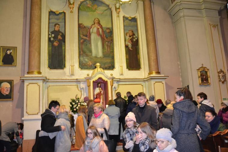 Kończąc zwrócił się ze szczególną prośbą do św. Agaty. Kilka dni temu trzech młodych mężczyzn z naszej parafii zginęło w wypadku samochodowym. Prośba była związana z tym tragicznym wydarzeniem. Ks. prałat Kazimierz prosił, by św. Agata wyprosiła młodym ludziom u Boga miłosierdzie, radość wieczną, a dla wszystkich opłakujących ich śmierć była umocnieniem w tym doświadczeniu, by pomogła przyjąć im wolę Bożą, chociaż jest ona tak trudna. Wiele ważnych słów padło podczas tej homilii. Warto do nich wrócić, bo refleksja nad nimi pozwoli na zmianę życia. A przecież był to odpustowy czas, czas szczególnych łask, ale i przemiany życia. Wraz z nami modliła się wspólnota TACY SAMI, uczestnicy wczasorekolekcji w Wojkowie, którzy po Eucharystii przezywali swoje spotkanie świąteczno- karnawałowe.
