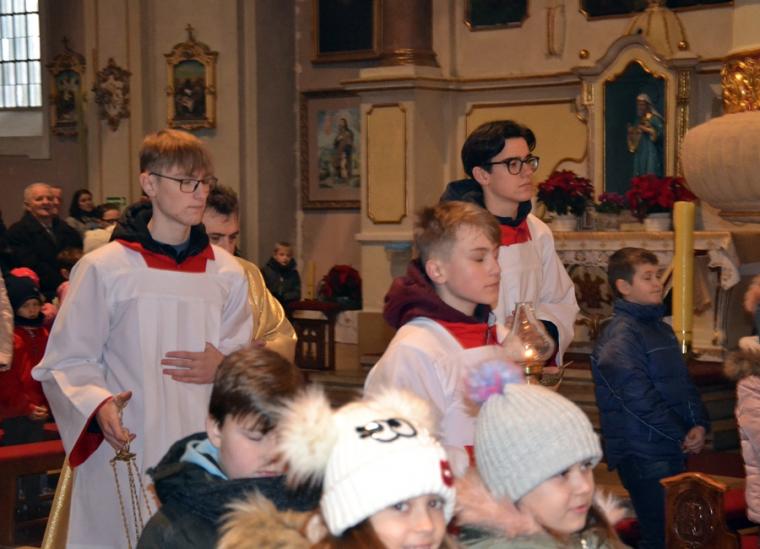 Na początku Eucharystii ks. kanonik Krzysztof podziękował małżonkom za pozytywną odpowiedź na jego zaproszenie. Podczas dzisiejszej mszy świętej zamiast homilii został odczytany List pasterski Biskupa Kaliskiego Edwarda Janiaka na święto Świętej Rodziny w związku z zakończeniem Nadzwyczajnego Roku Świętego Józefa Kaliskiego. Nasza diecezja przeżywała czas szczególnej łaski Nadzwyczajny Rok Świętego Józefa Kaliskiego. Chociaż, jak podkreśla w Liście bp ordynariusz, miał on wymiar ogólnopolski, a nawet międzynarodowy. W tym czasie do Narodowego Sanktuarium św. Józefa w Kaliszu pielgrzymowali wierni z najodleglejszych zakątków nie tylko naszego kraju, ale i świata. W Liście znalazły się słowa zachęty skierowane do małżonków, by wpatrując się w Maryję i Józefa pielęgnowali miłość, którą przyrzekali sobie w dniu ślubu. Ponadto hierarcha zachęcał małżeństwa przeżywające kryzys do poszukiwania sposobów umacniania i odnawiania miłości małżeńskiej. Ksiądz biskup wyraził także pasterską troskę osoby, które żyją w związkach niesakramentalnych. Część Listu poświęcona została kwestii wychowania w rodzinie. Ksiądz Biskup Edward Janiak napisał m.in. „W życiu rodzinnym nie powinno nigdy zabraknąć czasu dla siebie. Jest on niezbędny, aby rodzina mogła przeżywać siebie jak wspólnotę osób. Rozmowa, rodzinna modlitwa i uczestnictwo we Mszy św., wspólne świętowanie, rodzinny posiłek i rekreacja są nieodzowne, aby między rodzicami, dziećmi, dziadkami i innymi członkami rodziny nawiązać i utrzymać serdeczne relacje. Bliskość w rodzinie to sprawa tworzenia autentycznych relacji”. W ostatniej części Listu biskup ordynariusz zwrócił uwagę na owoce Nadzwyczajnego Roku Jubileuszu Świętego Józefa Kaliskiego.