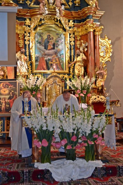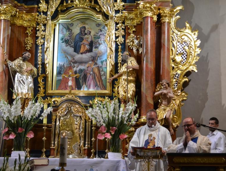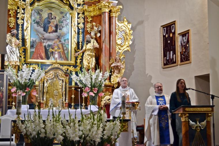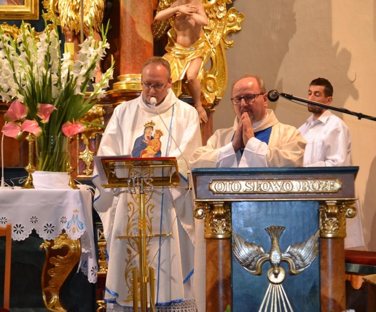 O godz.18:00 w sanktuarium sprawowana była Eucharystia. Przewodniczył jej ks. Szymon Grzeszkiewicz, wspólcelebransem był ks. Piotr Karasek, który wygłosił naukę rekolekcyjną.