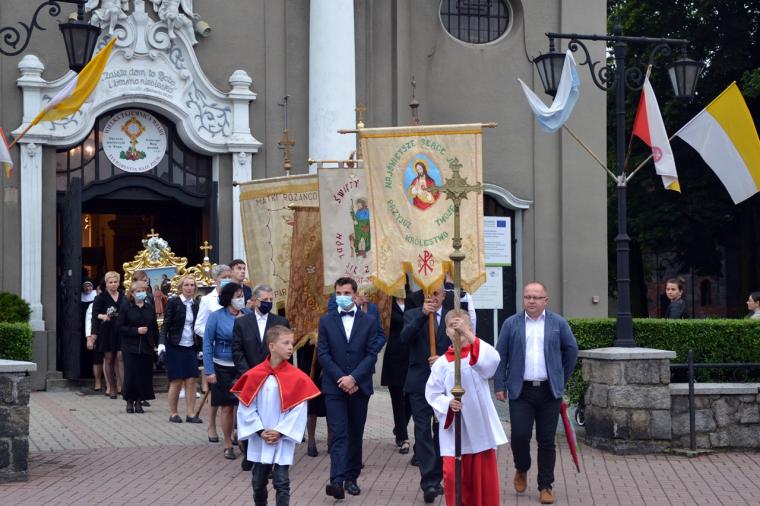 Po odnowieniu aktu poświęcenia się miasta Najświętszemu Sercu Pana Jezusa ks. kan. Krzysztof Ordziniak  udzielił błogosławieństwa Najświętszym Sakramentem na cztery strony świata i procesja powróciła do kościoła. Tu odśpiewana została pieśń „Najświętsze Serce Boże, poświęcamy Ci...”.