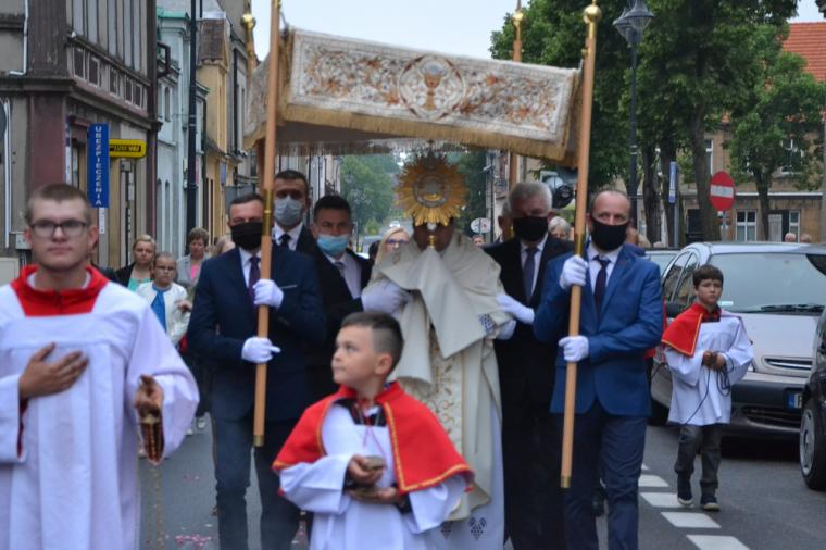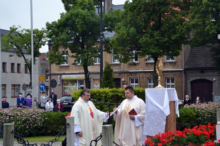 Na rynku została odmówiona litania do Najświętszego Serca Jezusowego.  Od kilku lat w uroczystość Najświętszego Serca Pana Jezusa na rynku wybrzmiewają - tak jak w dniu poświęcenia figury - słowa aktu zawierzenia. W szczególnym czasie doświadczania przez nas epidemii zostały wypowiedziane przez ks. proboszcza. Przypomniały nam one o zobowiązaniach przyjętych przez naszych przodków, ale  jakże  aktualnych dla nas  żyjących współcześnie. Przypomnijmy fragment tego aktu poświęcenia się miasta:  „Przychodzimy więc dzisiaj, by uznać całkowite panowanie Twoje nad miastem naszem. Chcemy odtąd Twojem życiem żyć, chcemy w sobie te cnoty pielęgnować, za które już tu na ziemi pokój obiecałeś(...). Panuj więc nad naszym rozumem przez prostotę wiary, panuj też przez swa miłość nad sercami naszemi, które niech całkowicie nią zapłoną. Chcemy je w Twej żarliwej miłości utrzymać przez częste przyjmowanie Komunii św. Racz, Boskie Serce, przewodzić naszym zebraniom, błogosław nasze duchowne i doczesne przedsięwzięcia, rozpraszaj nasze troski, uświęcaj nasze pociechy i łagódź nasze cierpienia”.