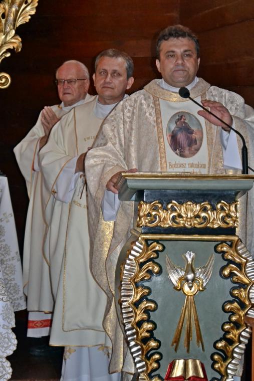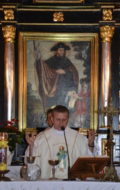 Na początku mszy świętej ks. kan. Krzysztof, kustosz sanktuarium przywołał słowa z pieśni „ Wielce kochany, w Bogu Rochu święty” i zaznaczył, że ponieważ jest On naszym przemożnym Patronem więc, by przygotować się do uroczystości odpustowych ku Jego czci rozpoczynamy nowennę. Ksiądz kan. Krzysztof skierował słowa podziękowania do księdza Sebastiana za to, że przyjął jego zaproszenie do duchowego przygotowania wiernych do szczególnego odpustowego czasu. Rozpoczynając konferencję ks. rekolekcjonista nawiązując do czytań zwrócił uwagę, że widzimy w nich z jednej strony ludzi deklarujących wiarę, ale jednocześnie szemrali przeciwko Bogu. Z kolei w Ewangelii mamy obraz kobiety kananejskiej, osoby niewierzącej, na wielkość wiary której zwraca uwagę sam Jezus. Kapłan zwrócił uwagę, że słowo Boże ma nas pobudzać do refleksji, do rachunku sumienia. W dalszej części konferencji ks. Sebastian wyjaśnił znaczenie słowa chrześcijanin. Podkreślił, że w języku polskim pochodzi od słowa chrzest, zaś w języku greckim znaczy chrystusowy. Zwrócił uwagę, że chrystusowy to ten, który należy do Chrystusa. Zaakcentował, że powinniśmy sobie stawiać pytanie, czy należę do Chrystusa i jak to przekłada się na naszą codzienność. „Chrzest -podkreślił kapłan- jest punktem wyjścia, bo chrzest włącza nas w wiarę. Słowo chrzest w języku greckim chrzcić- dosłownie tłumacząc znaczy zanurzać. Kiedy Pan Jezus posyła swoich uczniów to mówi: Idźcie i głoście Ewangelię i zanurzajcie wszystkich w imię Ojca i Syna i Ducha Świętego”. Kontynuując kaznodzieja podkreślił, że jesteśmy na tyle chrześcijanami na ile jesteśmy zanurzeni w Bogu. Łaska chrztu ma nas nieustannie przenikać wszystko co składa się na nasze życie. Nawiązując do mitu o Achillesie wyjaśnił, że jeśli coś nie będzie zanurzone w Bogu będzie miejscem cierpienia, duchowej śmierci. Ksiądz rekolekcjonista zwrócił uwagę, że Jezus przychodząc na ziemię zanurzył się w naszym człowieczeństwie. Jednocześnie zaprosił: zanurz się w moją paschę. Oznacza to życie przeniknięte Bogiem, Jego słowem. „Święty- kontynuował kapłan- to jest ten człowiek, który pozwala, aby Bóg przenikał jego życie. To jest człowiek zanurzony w Bogu”. Nawiązując do słów św. Pawła zachęcał byśmy zapuszczali korzenie we właściwym miejscu, bo tylko wtedy wydamy właściwe owoce.Ksiądz Sebastian przypomniał, że kiedyś ludzie gdy przyjmowali chrzest byli cali zanurzani w wodzie. Był to znak, że tak jak całkowicie kapłan zanurza człowieka w wodzie i nie ma na nim żadnego miejsca suchego tak ma zostać całkowicie zanurzony w Bogu, tak ma go całkowicie przenikać łaska Boża. Jednocześnie ksiądz rekolekcjonista zaakcentował słowo chcieli zwracając uwagę, że takie całkowite zanurzenie w Bogu jest dla człowieka trudne, gdyż jest w nas dużo niewiary, lęku, grzechu. Kontynuując zapytał: po co żyjemy? Kaznodzieja odpowiedział żyjemy po to, żeby uczyć się wiary, zaufania Panu. Bogu. Kapłan przyrównał życie człowieka do mieszkania, w którym otwieramy drzwi dla naszego gościa, który chce wejść. Na tę czynność potrzebujemy różnego czasu. Gdy te drzwi zostaną otwarte Bóg – gość może wejść do naszego życia. Kapłan kontynuował: „Zadanie zrobione, Bóg jest w naszym życiu, przychodzi, nas zbawi. Jesteśmy w niebie ze świętymi, z naszymi zmarłymi za których się modlimy. Nie ma już później potrzeby kontynuowania życia na ziemi. Osiągnęliśmy zbawienia, Bóg przyszedł”. Kapłan zachęcał do refleksji nad tym jak żyć, ale i pragnienia by te drzwi naszego życia były dla Boga otwarte. Ważne jest pragnienie obecności Boga w naszym życiu, pragnienie łaski Bożej, a wtedy możemy liczyć na to, że Bóg znajdzie drogę do człowieka. Kaznodzieja zachęcał zebranych w sanktuarium, by w ten pierwszy nowennowy dzień wzbudzili w sobie pragnienie zanurzenia się w Bogu, aby być chrześcijaninem, aby Bóg przenikał wszystko w naszym życiu. Zachęcał, byśmy wpuścić Pana Boga w te miejsca naszego życia, gdzie jest On jeszcze nieobecny. Pomóc nam w tym może orędownictwo św. Rocha. Kapłan podkreślił, że Bóg chce wejść w te zakamarki naszego życia, które są nieuporządkowane. Zaznaczył, że woda chrzcielna, która symbolizuje łaskę Bożą jest po to, by obmywać nas z brudu duchowego. Kończąc ks. Sebastian zachęcał: „ Punktem wyjścia musi być pragnienie, Panie Boże przyjdź, chcę się w Tobie zanurzyć, chcę być zanurzony całkowicie, by wszystko było przeniknięte Tobą. O to dzisiaj z sercem prostym, ale usilnie prośmy dzisiaj Pana Boga przez wstawiennictwo świętego Rocha, kiedy dzisiaj po mszy świętej będziemy rozpoczynać nowennę”.