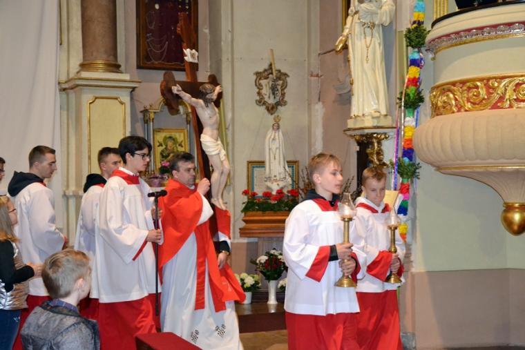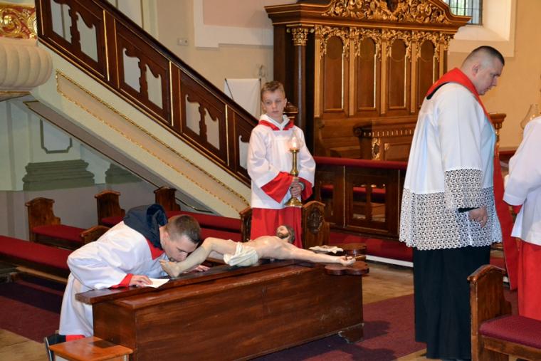 Liturgię Wielkiego Piątku poprzedziło nabożeństwo Drogi Krzyżowej. Poprowadził je ks. wikariusz Marcin Walczak. Szczególnego znaczenia nabierały w tym dniu słowa: „ Któryś za nas cierpiał rany (...) zmiłuj się nad nami”.