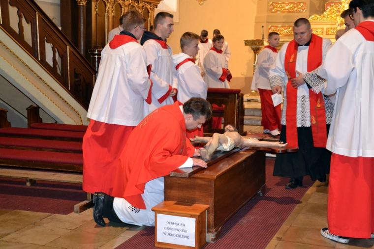 Po zakończonej liturgii Najświętszy Sakrament został przeniesiony do kaplicy Grobu Pańskiego, gdzie będzie trwała całonocna adoracja. Zgodnie z wieloletnią tradycją wartę przy Grobie Pańskim zaciągnęli druhowie OSP z Komorowa. Ich powołaniem jest służba Bogu i ludziom. W tę noc będą czuwali przy Jezusie złożonym w Grobie Pańskim. Zapewne wiele osób nawiedzi w tę noc kościół, by zatrzymać się na chwilę modlitwy przy Grobie Pańskim oraz uczcić krzyż.