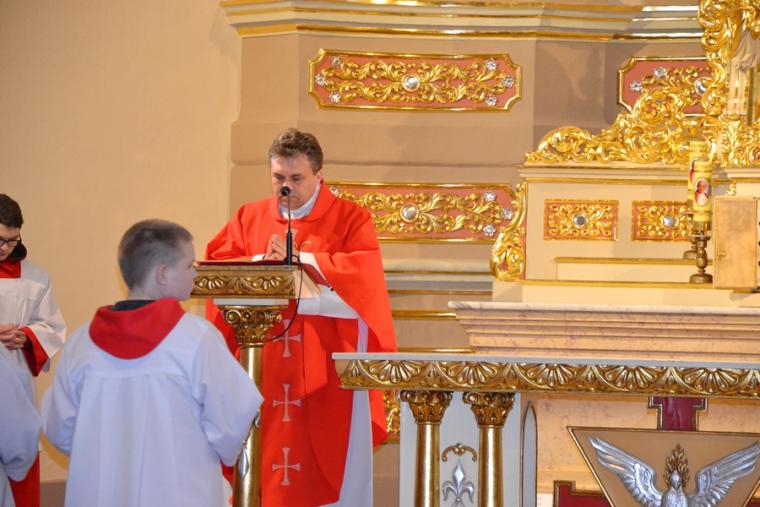 Liturgii Wielkopiątkowej przewodniczył ks. kan. Krzysztof Ordziniak. Niezwykła cisza i modlitewna zaduma zapanowała w kościele, gdy kapłan w tzw. geście właściwym Wielkiego Piątku leżał krzyżem przed ołtarzem. Podczas liturgii wielkopiątkowej odczytany został opis Męki i Śmierci Pana Jezusa. Podczas liturgii wielkopiątkowej kilka słów refleksji na temat krzyża w życiu człowieka skierował do licznie zebranych w świątyni wiernych ks. kan. Krzysztof. Kapłan zaakcentował, że Wielki Piątek jest dniem krzyża. Wskazał, że Kościół zatrzymuje się, aby ukazać ludziom cenę, za jaka Chrystus nas zbawił. Dodał jednak, że milczenie Wielkiego Piątku nie jest milczeniem rozpaczy, ale zadumy i refleksji nad miłością, która jest zdolna do największej ofiary. Kaznodzieja zachęcał zebranych do modlitwy i postawienia sobie pytania, czy potrafimy przyjąć krzyż. Krzyż, jak podkreślał, stoi w centrum Liturgii. Zwrócił uwagę na obnażony ołtarz, na którym brakuje obrusów, świeczników, kwiatów. Był natomiast pewien bardzo ważny gest. Powiedział: „celebrans(…) padł na twarz. To przejmujący znak modlitwy księdza leżącego na posadzce kościoła- jak podczas święceń kapłańskich. Trochę tak, jakby liturgia chciała nam przypomnieć, że bycie księdzem, bycie chrześcijaninem, jest powiązane z wejściem w tajemnicę Krzyża”. W dalszej części rozważania kapłan przywołał obraz znajdujący się w starym klasztorze. Przedstawia on Jezusa niosącego wielki krzyż, a wokół Niego wielu ludzi z małymi krzyżykami w ręku. Kapłan wskazał, że każdy człowiek ma swój krzyż. Podkreślił, że autor tego obrazu chciał ludziom przypomnieć słowa Chrystusa: „ Jeśli kto chce pójść za Mną, niech się zaprze samego siebie, niech weźmie krzyż swój i niech Mnie naśladuje”. Kontynuując, ks. proboszcz Krzysztof podkreślał potrzebę podjęcia swego krzyża i podążania z nim za Chrystusem. Wskazał na wielorakość i różnorodność krzyży, które trzeba przyjąć w swoim życie. Jest ich tak wiele, jak wielu jest ludzi. Zwrócił uwagę na krzyż samotności, zdrady, odrzucenia, choroby, nieszczęśliwych wypadków, śmierci bliskich. Kontynuując powiedział: „Krzyż ma wiele imion. Jedno jest pewne: trzeba podjąć swój krzyż, aby upodobnić się do Chrystusa. Kto nie bierze swego krzyża, nie jest Mnie godzien - mówi Jezus”. Kapłan zwrócił uwagę wiernych, że aby zrozumieć i podjąć swój krzyż, trzeba zrozumieć krzyż Chrystusa. To z niego mamy czerpać siłę i moc. W końcowej części rozważania kapłan przywołał postać Karola Antoniewicza, autora pieśni: „ W krzyżu cierpienie, w krzyżu zbawienie…”. Wskazał trudne koleje jego życia: śmierć dzieci, żony. Jego żona w czasie choroby mówiła do niego: „Karolu, trzeba głośno dziękować, a cicho cierpieć”. Po jej śmierci wstępuje do jezuitów. Ma dar przemawiania do cierpiących. W czasie epidemii z wielkim oddanie posługuje chorym. Sam się zaraża i tuż przed śmiercią pisze pieśń „ W krzyżu cierpienie, w krzyżu zbawienie, w krzyżu miłości nauka…”