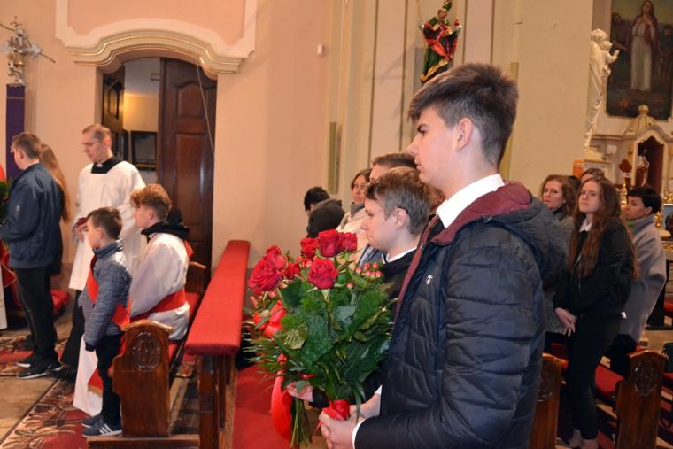 Dnia 3. kwietnia mikstacka wspólnota parafialna przeżywała wizytację pasterską, którą przeprowadził ks. bp Łukasz Buzun. Ważnym jej punktem była sprawowana o godz. 17:00  Eucharystia. Przewodniczył jej ks. bp Łukasz, a wraz z nim przy ołtarzu stanęli kapłani na co dzień   posługujący w naszej parafii oraz kapłani z dekanatu mikstackiego. Przed rozpoczęciem mszy świętej ks. proboszcz Krzysztof Ordziniak odczytał sprawozdanie, w którym przedstawił najważniejsze wydarzenia z życia parafii w ostatnim pięcioleci. Wskazał najważniejsze inicjatywy duszpasterskie podjęte w tym okresie oraz zrealizowane prace renowacyjne. Skierował słowa podziękowania do wszystkich angażujących się w prace na rzecz naszej wspólnoty parafialnej. Kończąc sprawozdanie ks. biskup zwrócił się z prośbą do ks. biskupa  o przewodniczenie mszy świętej  w intencji wszystkich parafian. Prośbę  o udzielenie sakramentu bierzmowania skierowali do ks. biskupa przedstawiciele rodziców. Podczas tej mszy świętej 26  młodych parafian  przyjęło Sakrament Bierzmowania, a wraz z nim Dary Ducha Świętego, które mają pomagać im w mężnym wyznawaniu wiary, w dawaniu świadectwa o Chrystusie w codziennym życiu. W czasie Eucharystii zostaliśmy ubogaceni słowem, które skierował do nas ks. biskup. Nawiązując do słów Ewangelii ksiądz biskup podkreślił, że jest ona streszczeniem teologii, eschatologii. Ukazuje nam perspektywę przeżywania życia w duchu religijnym. Ks. biskup Łukasz zaznaczył, że dzień ten był dniem przeżywania Sakramentu Bierzmowania dla młodzieży i ich bliskich. Zaakcentował, że sakramenty święte udzielane są w przełomowych momentach życia poprzez chrzest, sakrament pokuty, poprzedzający Eucharystię. Sakrament Bierzmowania udzielany jest w takim momencie przełomowym  ludzkiego życia kiedy człowiek  zaczyna się rozwijać, dojrzewać,  przeżywa okres adolescencji, czyli momentu kiedy wszystko zaczyna się w nim krystalizować, to kim naprawdę będzie w przeszłości i na wieczność – powiedział hierarcha. Kontynuując zwrócił uwagę na przykład Chrystusa, który działa tak jak działa Ojciec. Ksiądz biskup podkreślił znaczenie wzoru i relacji w życiu człowieka. Stwierdził, że relacje kształtują  się poprzez sprawiedliwość, która prowadzi do miłości i stanowi zasadniczy element formowania człowieka, który jest dobry, otwarty, życzliwy, pomocny. Wskazując na znaczenie sakramentu bierzmowania podkreślił, że jest on dopełnieniem chrztu świętego, ale ma  także charakter społeczny, gdyż człowiek zaczyna dorastać do własnego zdania. Potrzebna jest tu współpraca z Duchem Świętym, by nie wstydzić się wiary, umieć wyrazić swoje człowieczeństwo. W sakramencie bierzmowania -podkreślił ks. biskup Łukasz -otrzymujemy łaskę, która choć jest niewidzialna również jest relacją. Zwrócił uwagę, że człowiek popełniając grzech zrywa relację z Bogiem i sam nie jest w stanie jej nawiązać, musi otworzyć swoje serce na łaskę Ducha Świętego w sakramencie pokuty. Dokonuje się tam oczyszczenie wewnętrzne i związanie z Bogiem. Hierarcha dodał, że dramat grzechu jest zaprzeczeniem ludzkiej natury i jej dążeń  do piękna, szczęścia do relacji miłości. Kontynuując ks. biskup powiedział: „ Każdy człowiek czy to jest mały czy duży zawsze ma w swoim sercu i człowieczeństwie miejsce na miłość i każdy jej potrzebuje i zawsze jej będzie za mało na drodze ludzkiego życia. Zawsze pozostaje ten duży margines westchnienia, że to nie jest  tak do końca to czego  oczekiwał od drugiego człowieka. Dlatego potrzebujemy Bożej miłości, potrzebujemy Bożego Serca, potrzebujemy tego głębokiego oddechu naszej duszy, która spotyka się z Bogiem we wspólnocie parafialnej”. W dalszej części homilii ks. biskup zwrócił uwagę na wspólnotę parafialną jako miejsce przeżywania kolejnych sakramentów. Zwrócił uwagę, że punktem odniesienia dla każdego z nas jest Jezus Chrystus, a gdy się zagubimy czeka On na nas w sakramencie pokuty. Jest to etap pracy nad sobą, uświadomienia sobie roli natchnień Ducha Świętego. Ksiądz biskup zaakcentował znaczenie modlitwy, zwłaszcza modlitwy wspólnotowej w rodzinie. Zachęcał do zainteresowania się rytuałami  i przeżywania roku liturgicznego w rodzinie. Ks. biskup wskazał na  Maryję, jako tę, u której należy szukać pomocy, gdyż z Nią wszystko w życiu jest do uratowania. Przywołując postać św. Jana Pawła II zachęcał do odmawiania różańca w rodzinach, gdyż jak powiedział: „ to otwiera nasze serce na Boże miłosierdzie na ten naddatek miłości, który wykracza daleko, daleko w nieskończoność poza sprawiedliwość. Zresztą na zasadzie samej sprawiedliwości żadna ludzka relacja, żaden ludzki związek tak naprawdę nie przetrwa długo. Potrzeba tego naddatku, gdy człowiek w sposób niezasłużony udziela drugiemu człowiekowi tego gestu przebaczenia”. Ksiądz biskup zaakcentował, że każdy z nas potrzebuje przebaczenia od drugiego człowieka, ale i od Boga. Kaznodzieja zwrócił uwagę na zachowywania w pamięci i potrzebę  przywoływania dobrych doświadczeń z naszego  życiu, także tych związanych z działaniem Boga i Bożej Opatrzności. Kończąc ks. biskup Łukasz powiedział: „Prośmy teraz naszych wszystkich patronów, prośmy naszych patronów ze chrztu, z bierzmowania, prośmy także Matkę Bożą i św. Józefa oraz św. Rocha, który patronuje tutaj, tej parafii w sposób, aby nasze przeżywanie Sakramentu Eucharystii i Bierzmowania tutaj w tym miejscu i momencie rodziło w nas owoce  nawrócenia, przemiany i zaufania wobec Boga, który jest Ojcem pełnym miłosierdzia. Amen”.